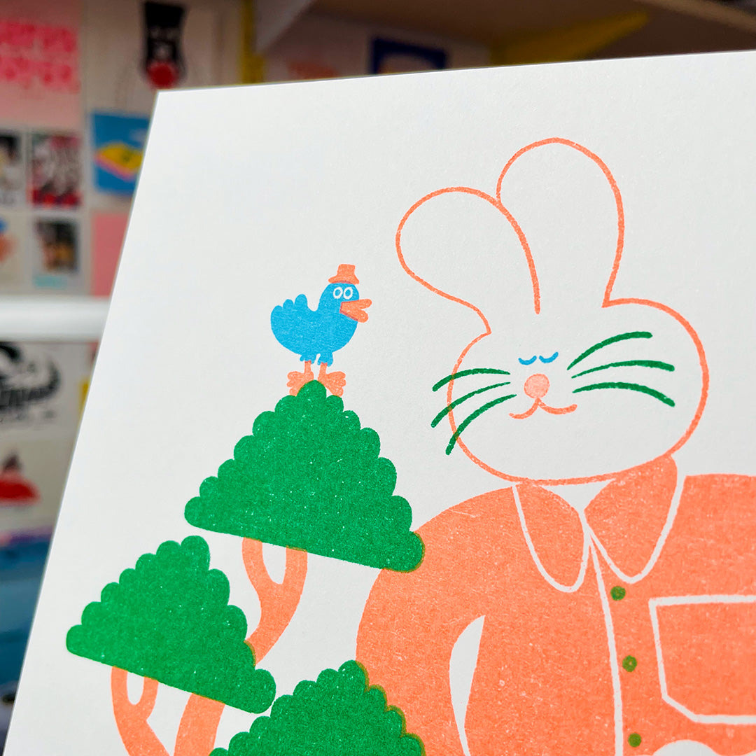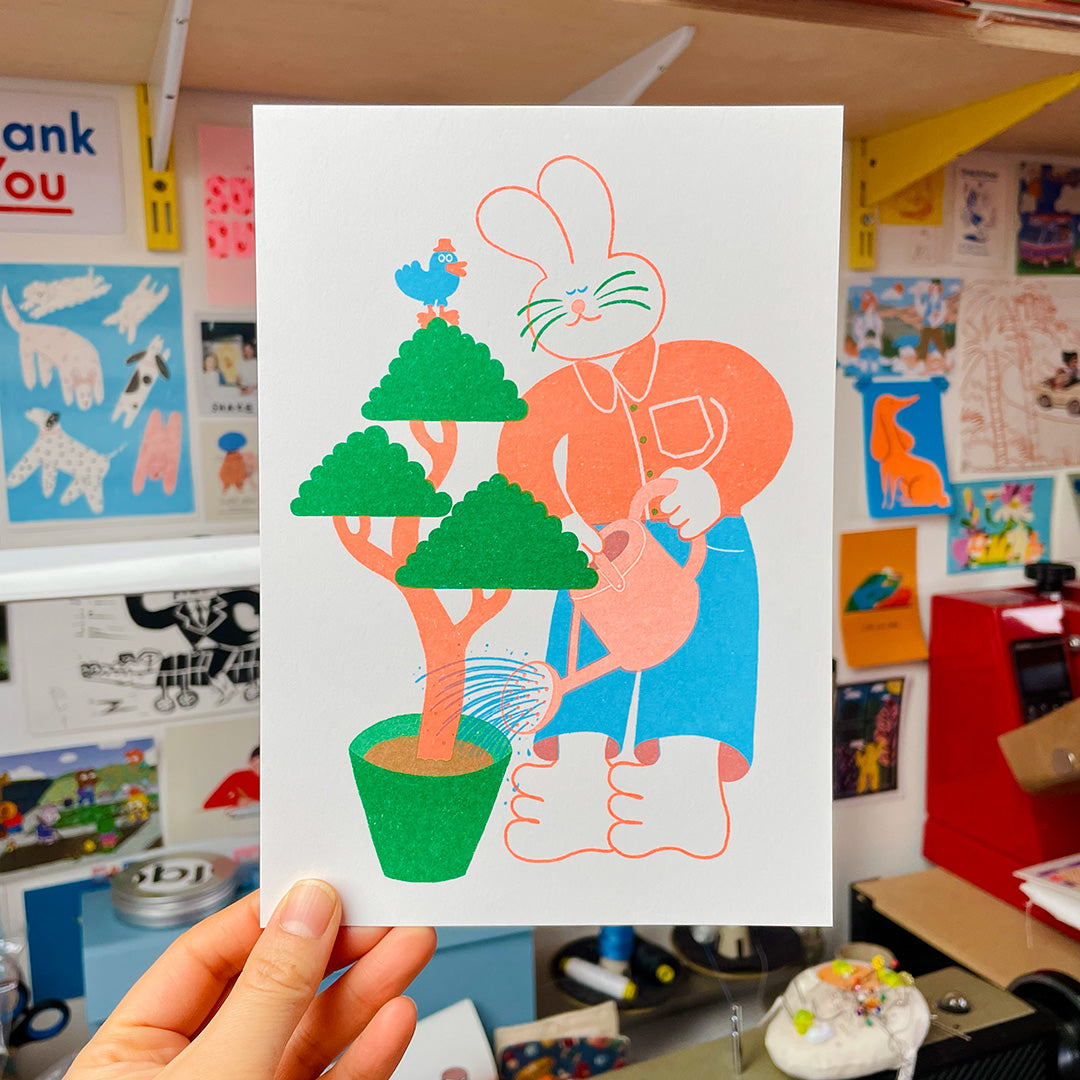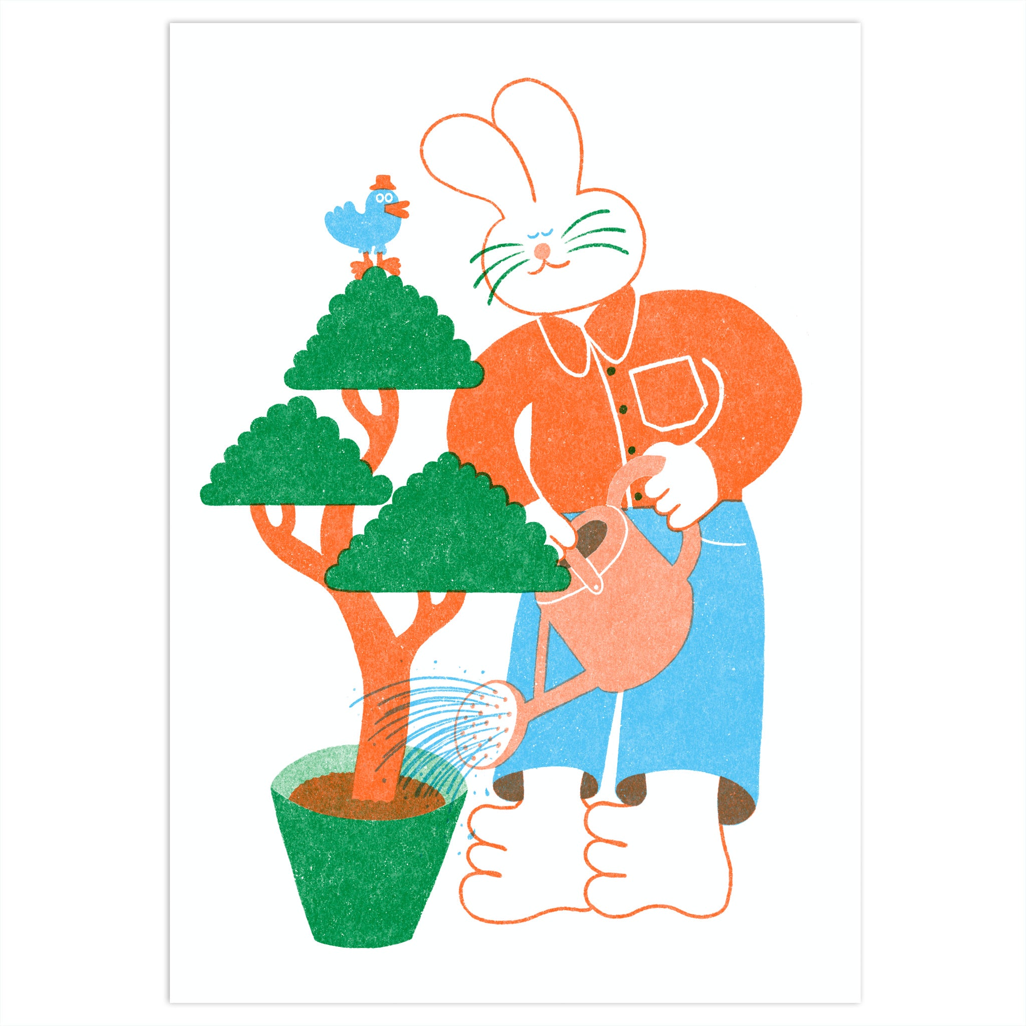 YUK FUN Bunny Waters the Money Tree Riso Print
