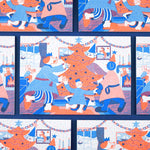 Original illustrations by YUK FUN. Please note these cards are printed with fluorescent orange ink which is extremely difficult to capture in a photo! Random coloured envelopes included.