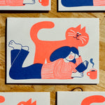 - Just someone trying to have a cup of tea with a very clingy cat