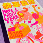 3. A bicycle fruit delivery with two snake pals lending a hand, wishing you a fruitful year.