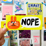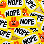 NOPE sticker in orange and yellow made from eco friendly vinyl.