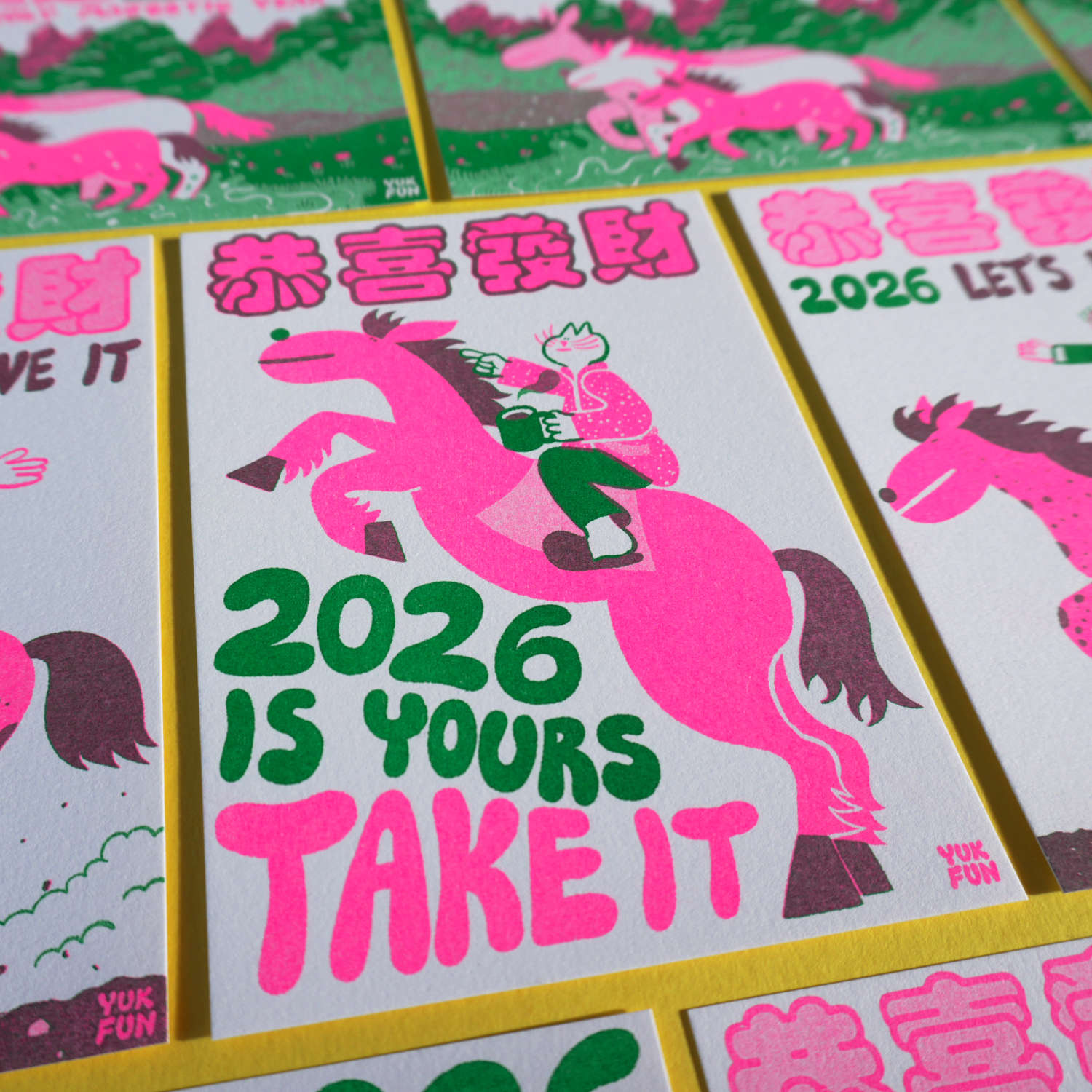 It's just two of us at YUK FUN so it takes about 2-3 working days to print and pack orders. Delivery times stated below are from when orders are finished being packed.