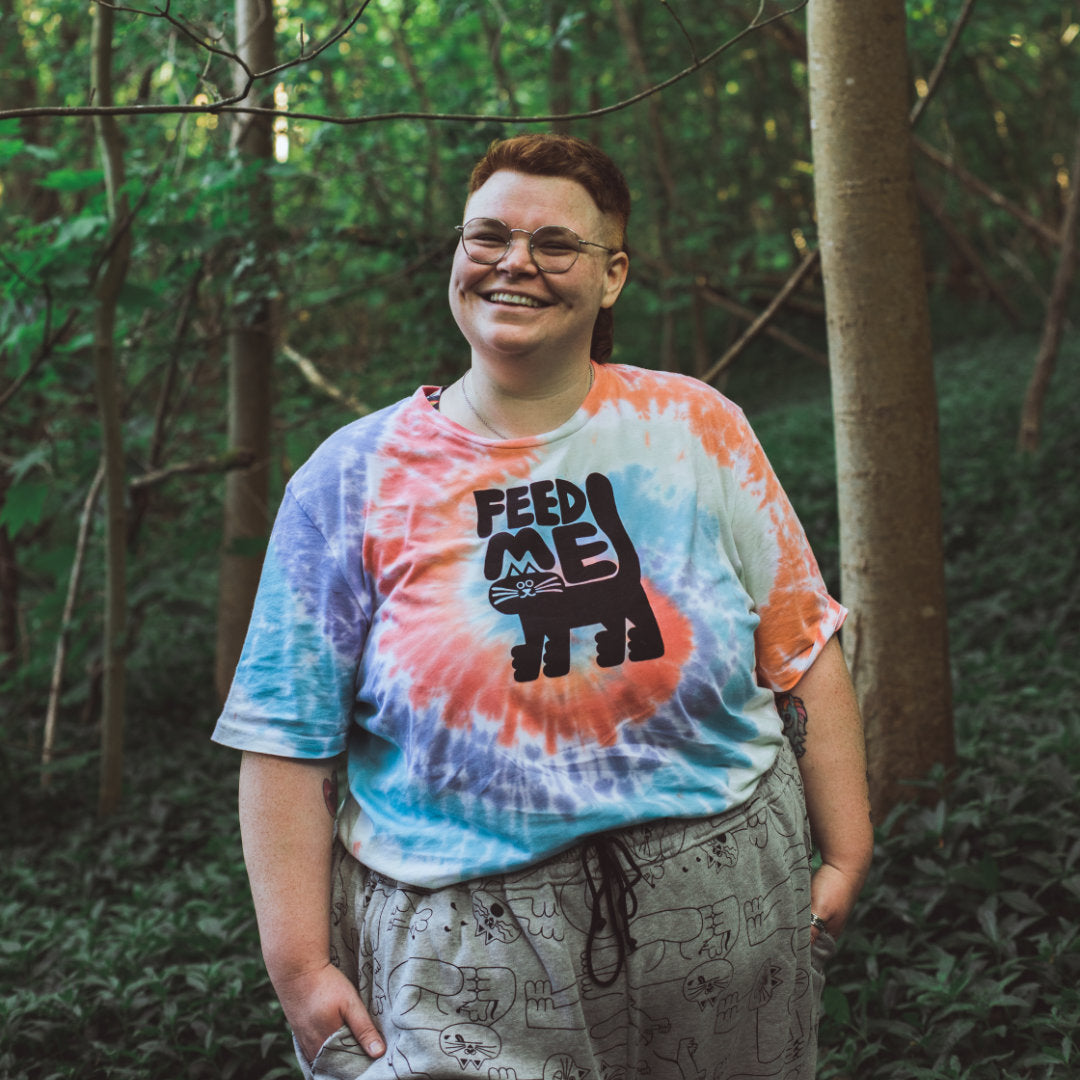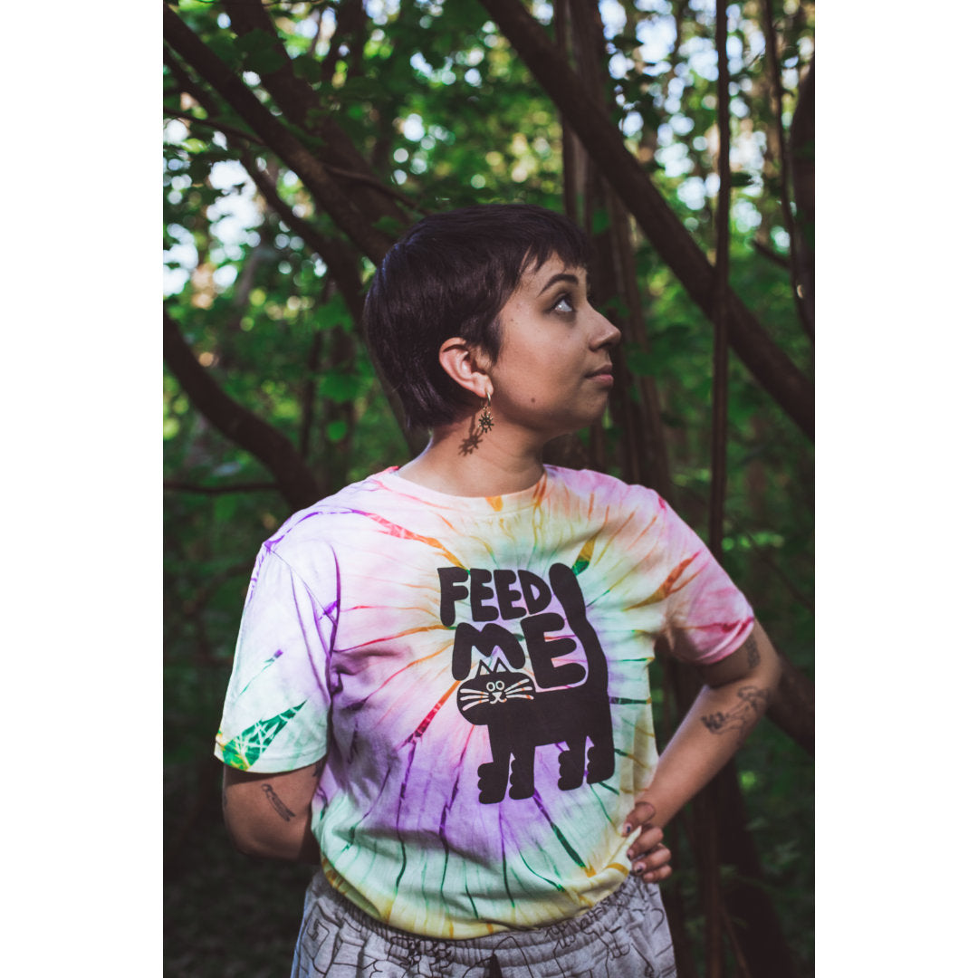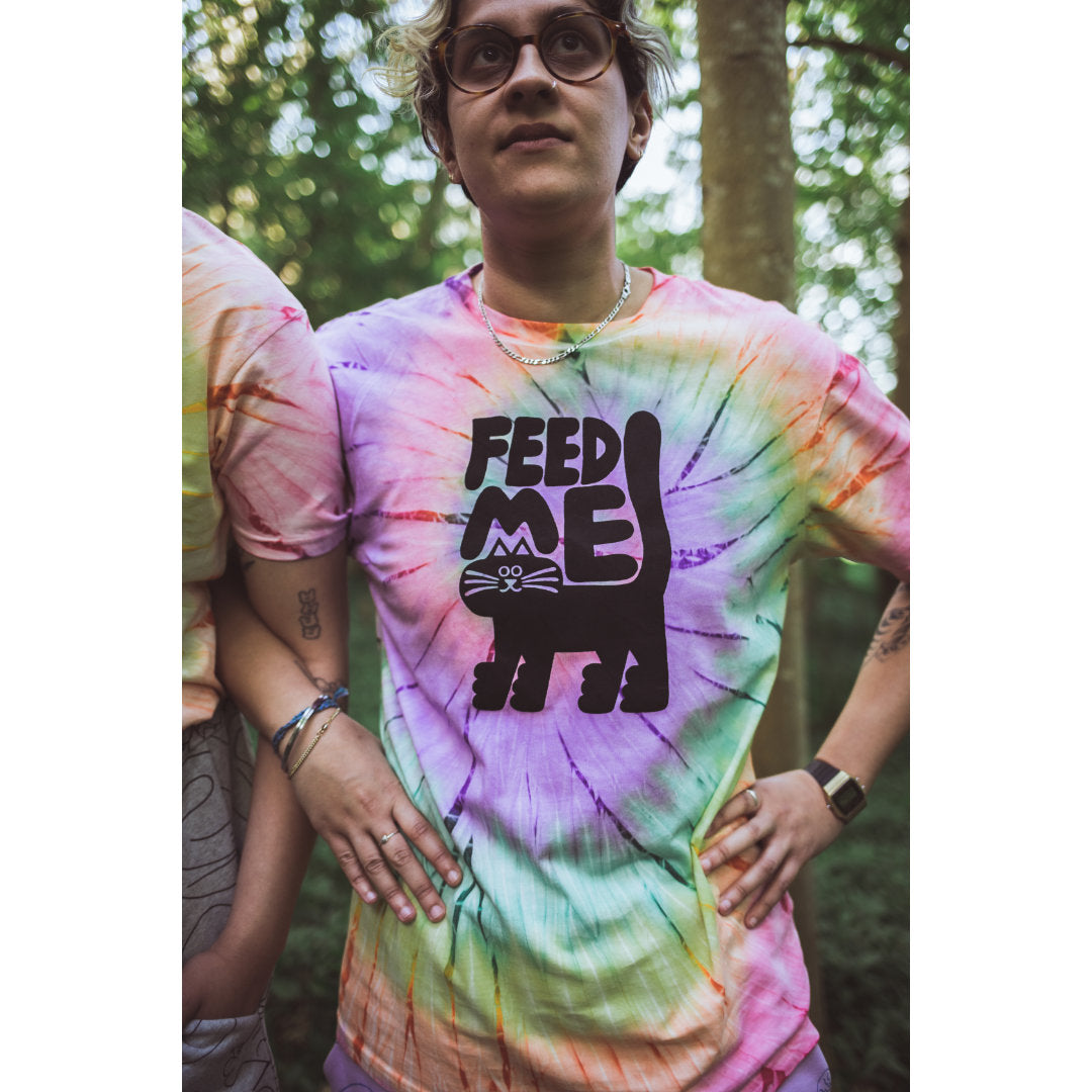 FEED ME T-shirt is back! But even better on a psychedelic tie-dye organic t-shirt! Radical. Never go hungry again with this t-shirt.