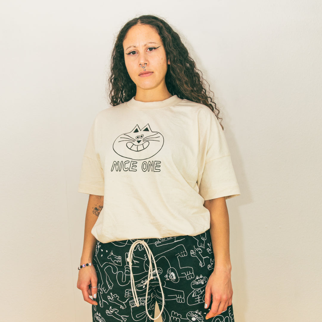I bought the Nice One t-shirt as a present for my wife who loves cats. She was over the moon with the gift. Thank you.