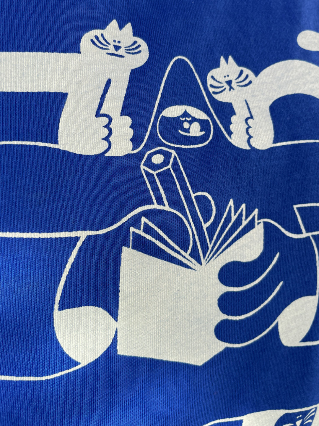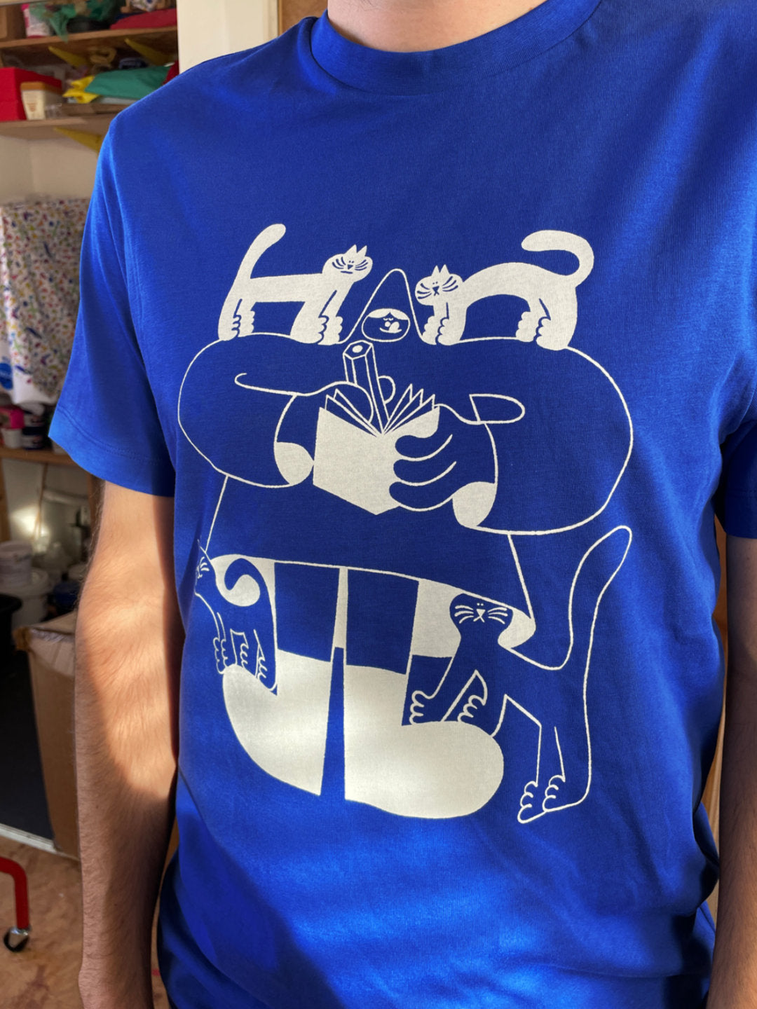 Somebody's having a nice time drawing a gang of cats. We picked a nice work jacket colour blue t-shirt for this design or you can pick a classic white tee!