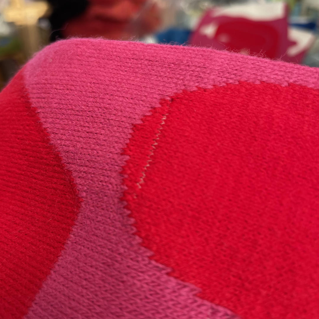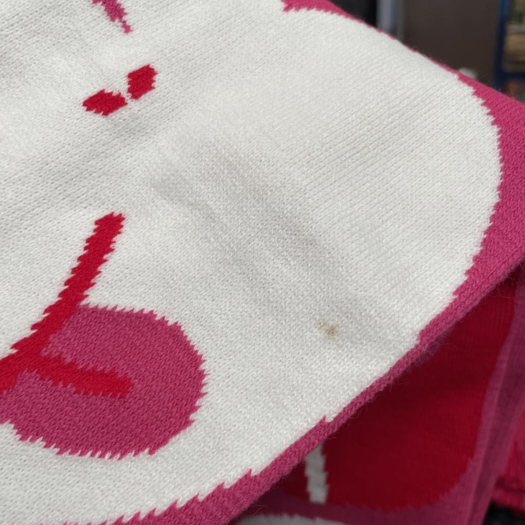 We made a scarf version of our very pink washi tape! Only the cutest faces here on this pink, red and white scarf.