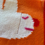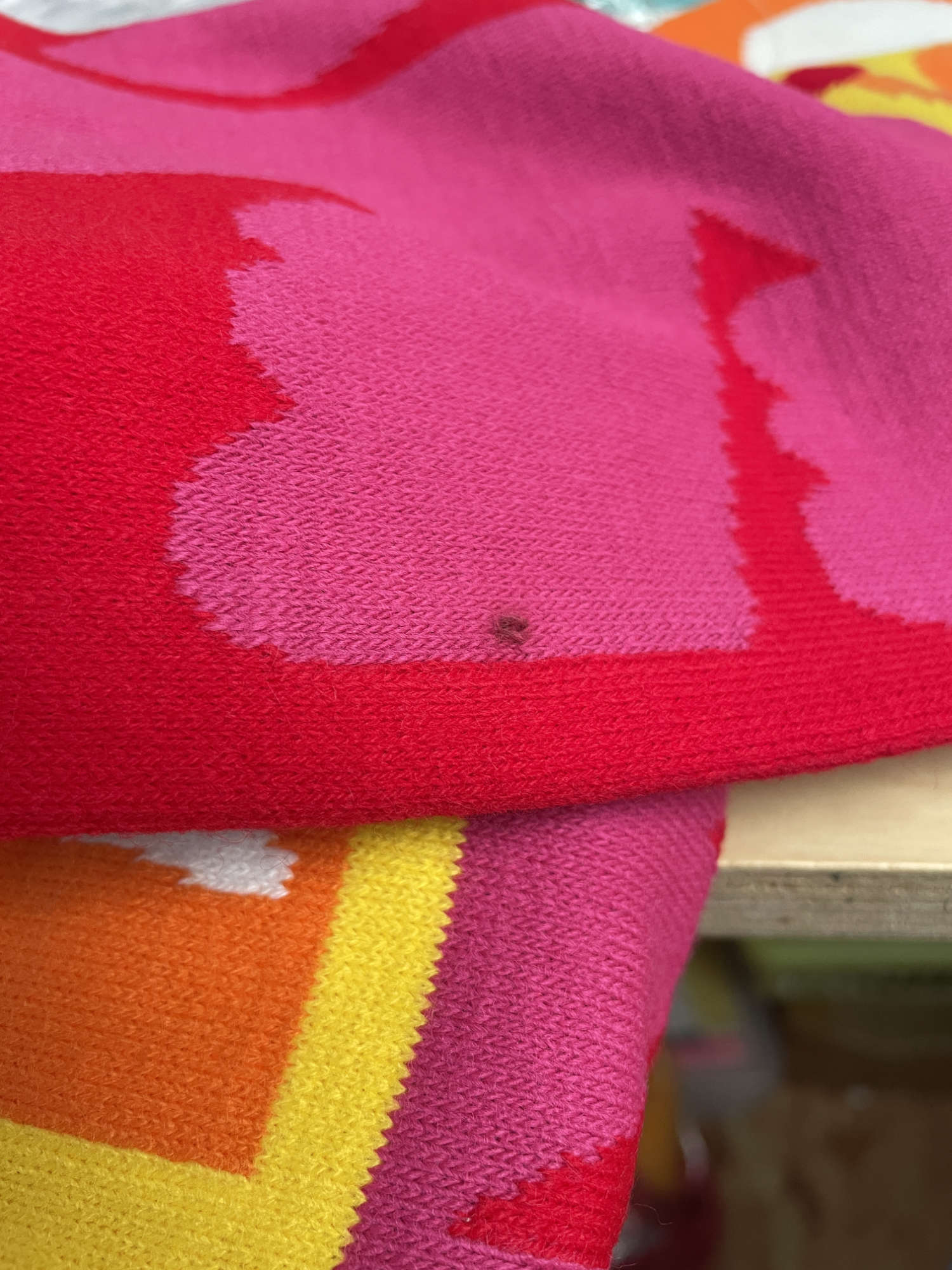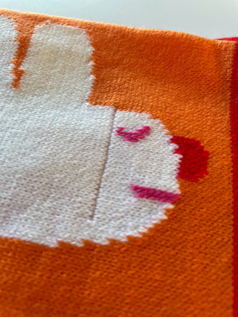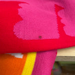 Cosy tropical pink, red, yellow and orange double-sided knitted scarf only for the goodest good boi's out there.