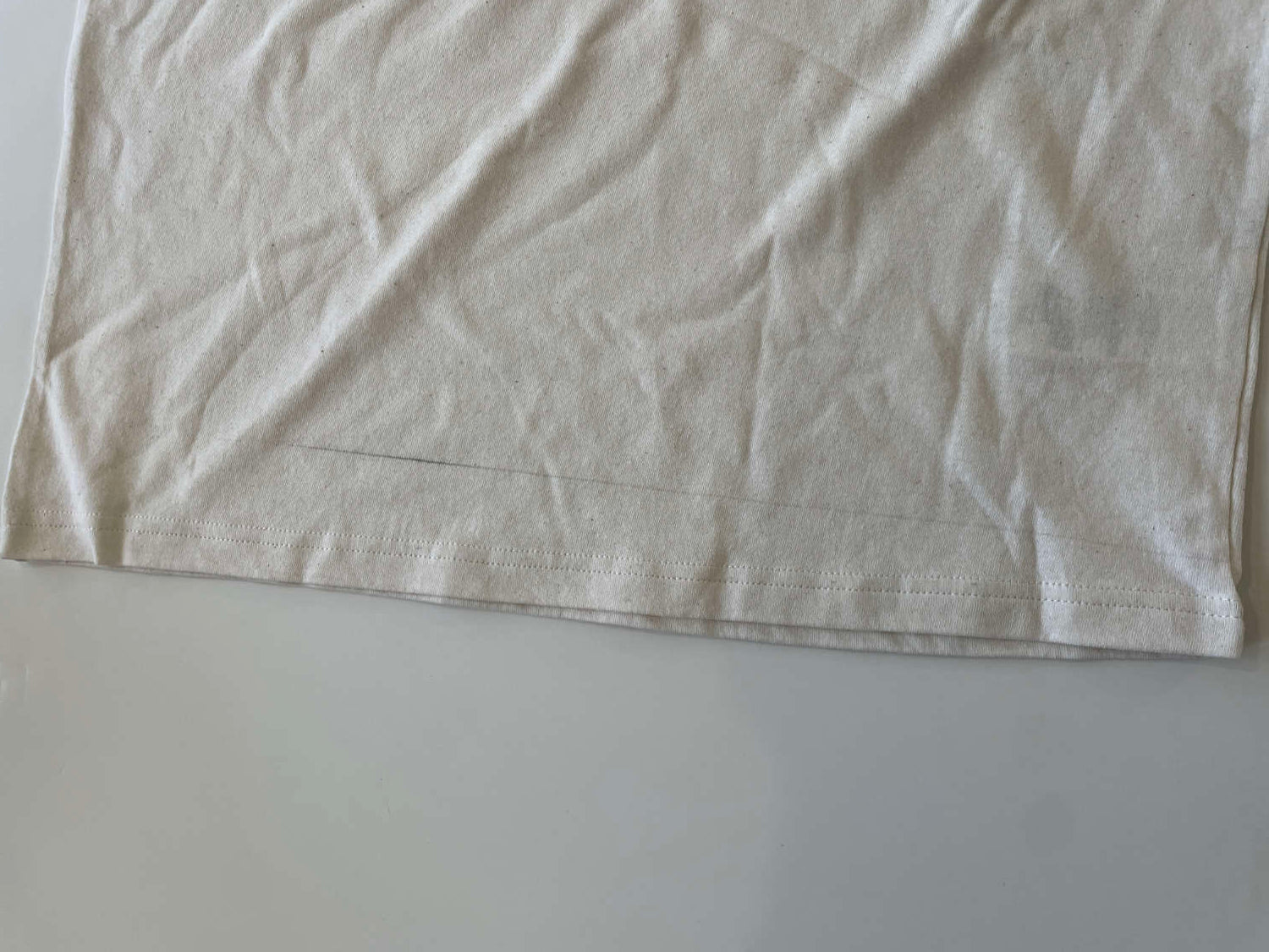 - REGULAR Fit T-shirts which are an off white colour. These have a dark grey line across the bottom of the front side of the T-shirt - it might come out in the wash but no guarantees! Sizes available in S