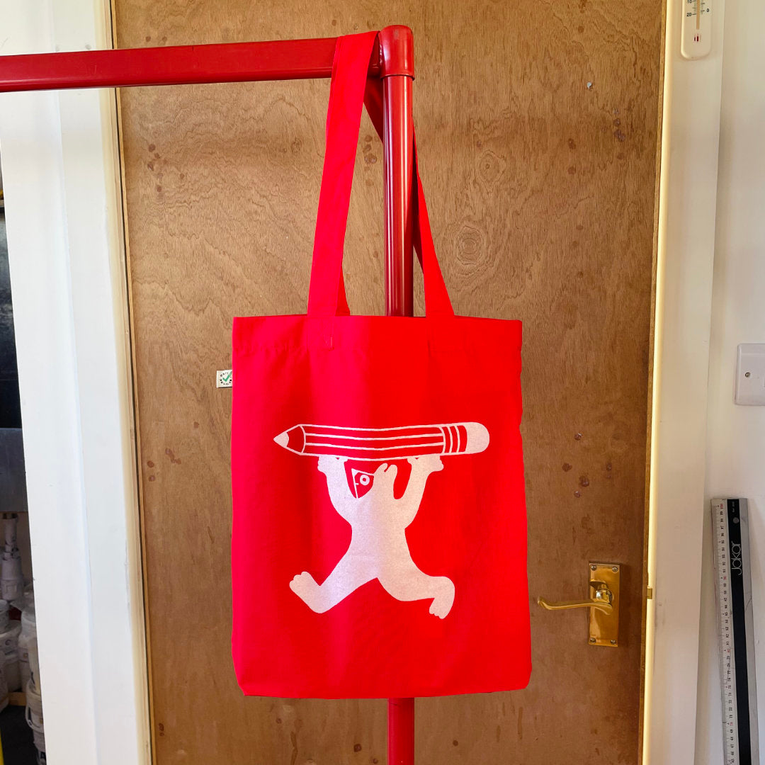 Cute Pencil Person tote bag! Here's a lil character carrying our favourite tool: the mighty pencil.